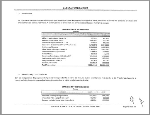 La Agencia de Noticias del Estado Mexicano (Notimex), pese a encontrarse en huelga desde 2020 y actualmente en proceso de liquidación, registró al cierre de 2022 adeudos con proveedores por 44.3 millones de pesos.