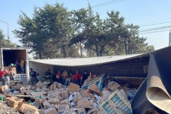 Sin embargo, en videos que han circulado en redes se observa que el producto no estorbó por mucho tiempo, ya que presuntamente alrededor de las 9:00 horas pobladores del lugar tras enterarse del accidente se acercaron y aprovecharon para llevarse el producto.