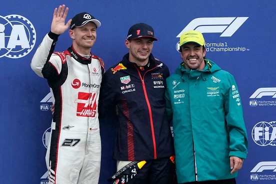 El alemán Nico Hülkenberg (Haas-Ferrari) logró una sorprendente segunda plaza y el español Fernando Alonso (Aston Martin) se hizo con la tercera en el circuito Gilles Villeneuve.