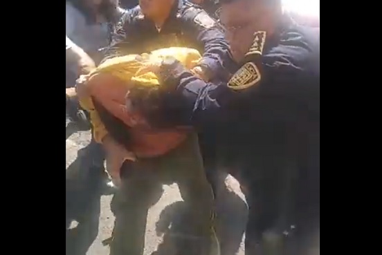 El grupo de padres de familia intentaban golpear al presunto abusador, los uniformados tuvieron que rodearlo para subirlo a la unidad en la que fue trasladado ante las instancias correspondientes.