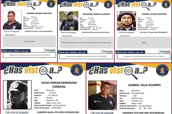 En las fotografías de las fichas de búsqueda se observa a varios de los desaparecidos con el uniforme de la corporación y, las denuncias de los policías se presentaron de manera oficial el 22 de junio, luego de que en el ayuntamiento de Taxco fueron localizadas cuatro granadas de fragmentación.