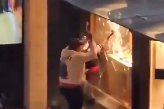 Reunidos frente a la joyería sacaron hachas y mazos para golpear los aparadores y sustraer 15 relojes de alta gama.