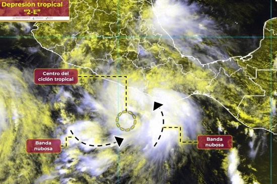 El Servicio Meteorológico Nacional (SMN), informó que la depresión tropical Dos-E, próxima a convertirse en la tormenta tropical Beatriz, la segunda de la temporada en el Océano Pacífico, podría tocar tierra el fin de semana como huracán en Michoacán, Colima o Jalisco, y posteriormente dirigirse hacia Baja California Sur.