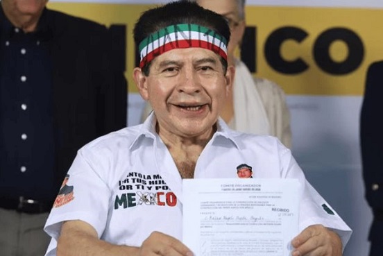 Con su característica banda tricolor en su cabeza, dijo estar listo para competir y ganar la candidatura presidencial, ya que «voy muy bien en las encuestas y será un poco difícil, pero no imposible porque el pueblo me quiere y el pueblo quiere un cambio, ya no quiere delincuentes, traidores y asesinos».
