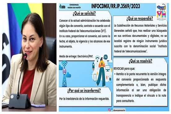 Durante la vigésima quinta sesión ordinaria del Pleno, la Comisionada San Martín expuso el recurso INFOCDMX/RR.IP.3569/2023 en el que un particular requirió saber si la Alcaldía ha celebrado algún convenio con el IFT; en su caso, proporcionar una copia para saber la fecha, el objeto, la vigencia y los alcances de ese instrumento.