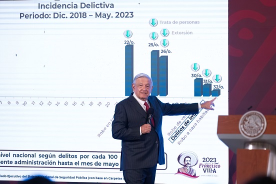 Cuestionado insistentemente sobre la situación en Chiapas, aseveró que tiene el informe de todo lo que pasa en Chiapas, «los datos que tenemos que no existe una situación de descontrol y violencia en Chiapas». Informó que en Chiapas hubo 36 homicidios por cada cien mil habitantes en Mayo, el lugar 26 del país y en este delito no ha cifra negra. En otros delitos los reportes son: lugar 22 robo a transporte; en secuestro , el 25 y a la baja; robo de vehículo, lugar 30; en robo a casa habitación, 32.