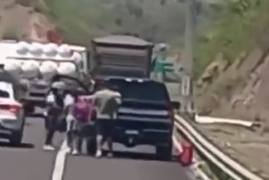 En otra parte del mismo clip también se aprecia que otros sujetos armados asaltan a otro automovilista de su camioneta.