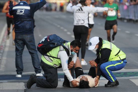 La Secretaría de Gobierno de la Ciudad de México informó que, en el marco del Medio Maratón de la Ciudad de México, a las 7:45 horas la Secretaría de Gestión Integral de Riesgos y Protección Civil (SGIRPC) y personal del Escuadrón de Rescate y Urgencias Médicas (ERUM) recibieron el reporte de un hombre de mediana edad que presentaba convulsiones sobre Paseo de la Reforma, a la altura de la Estela de Luz.