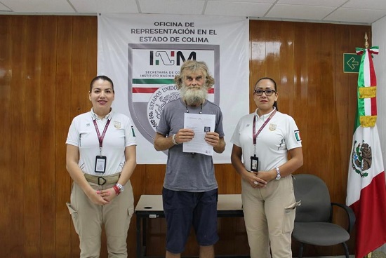 El Instituto Nacional de Migración (INM) auxilia a la persona de nacionalidad australiana de nombre Timothy Lyndsay Shaddock, quien fue avistado y rescatado, junto a su perrita “Bella” por la tripulación de una nave pesquera tras naufragar por alrededor de tres meses en altamar del Océano Pacífico mexicano.