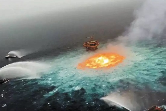 7-julio-2023. Una explosión ocasionó un incendio en la plataforma marina Nohoch-Alfa del activo de producción marina Cantarell, ubicado en la Sonda de Campeche. El incidente dejó dos trabajadores fallecidos y uno más desaparecido.