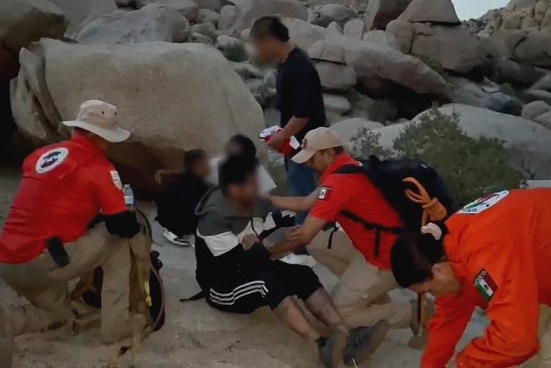 Tras 15 horas de búsqueda en la zona montañosa de La Rumorosa, elementos de Grupo Beta de Tijuana y de Tecate del Instituto Nacional de Migración (INM) en Baja California localizaron y auxiliaron a cinco personas migrantes de nacionalidad peruana y colombiana, entre ellos un menor de edad enfermo.