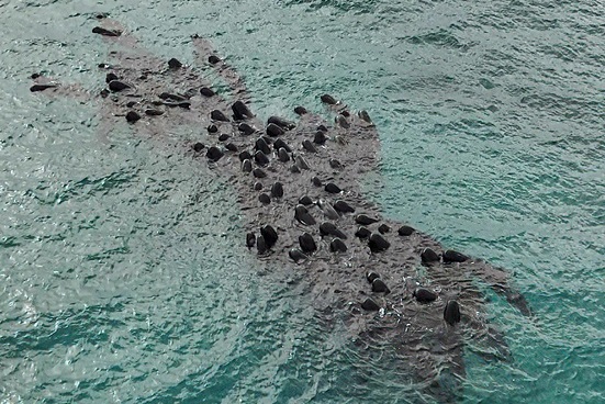 Pero estas tareas afrontan una serie de peligros por la existencia de “ballenas grandes, angustiadas y potencialmente enfermas, tiburones, olas, maquinaria pesada y embarcaciones”, explicó el organismo regional.