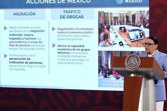 México reitera su compromiso de seguir realizando acciones que favorezcan la migración regulada y humana, y en el análisis se observó que hay una tendencia a la baja del flujo de personas que busca emigrar a Estados Unidos”, comentó la titular de la SSPC.