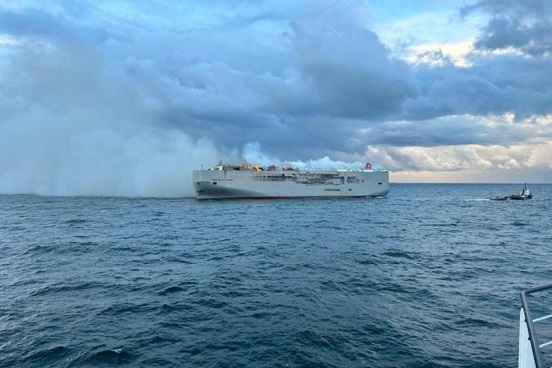 El incendio comenzó el martes por la noche en el Fremantle Highway, de 199 metros de eslora y con matricula en Panamá, que se dirigía de Alemania a Egipto, y obligó a varios miembros de la tripulación a saltar por la borda.