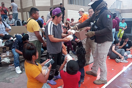 A los dos grupos de migrantes se les transfirió al Centro de Usos Múltiples de esta ciudad, en donde se les brindó atención médica, alimentos y agua, y se procedió a realizar los trámites migratorios correspondientes.