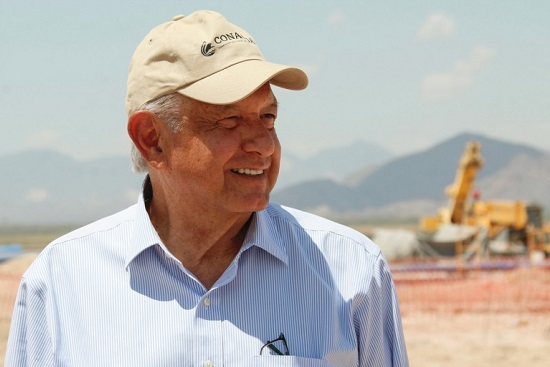 Durante un sobrevuelo en las instalaciones anunció que la planta quedará concluida para su funcionamiento en octubre de 2023.
