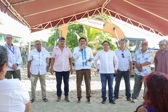 Santiago Pinotepa Nacional, Oax.- En seguimiento a los procesos de transformación de la entidad a través de sus comunidades, el Gobernador del Estado, Salomón Jara Cruz visitó la agencia municipal de Corralero en esta municipalidad, para atestiguar los trabajos de desazolve de 240 metros lineales en la boca barra, en Playa Corralero y mejorar así el flujo de fauna marína del canal de navegación.