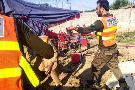 El jefe de la policía provincial, Akhtar Hayat, dijo a Reuters que la explosión fue causada por un atacante suicida con bomba.
