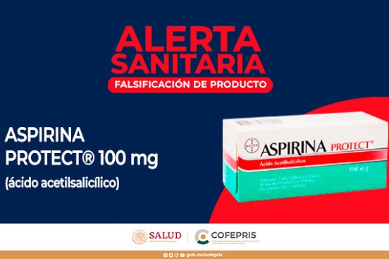 La Comisión Federal para la Protección contra Riesgos Sanitarios (Cofepris) emitió alerta sanitaria a la población por la falsificación de Aspirina Protect 100 mg.