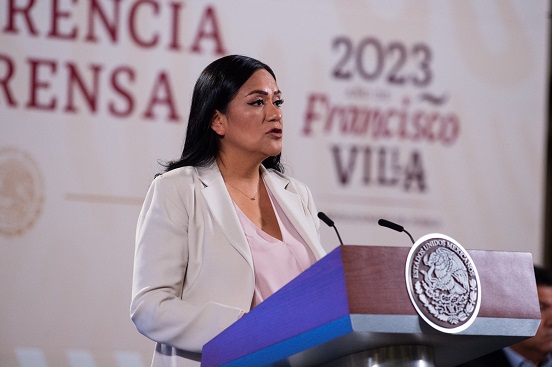 En el Salón de la Tesorería de Palacio Nacional, explicó que en la ruta del Tren Maya se aplica de forma integral la política de bienestar del Gobierno de México.