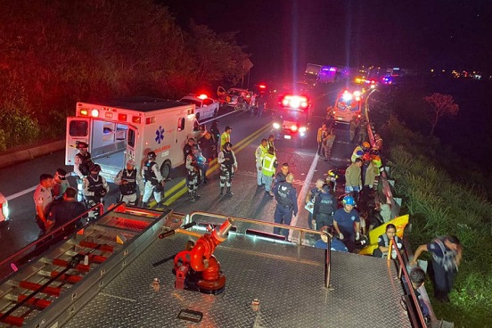 Al lugar llegó personal de la Secretaría de Seguridad y Protección Ciudadana, así como de la Policía Estatal, bomberos, Cruz Roja Mexicana, de la Sedena, Guardia Nacional y del Grupo AMEC, los cuales se coordinaron para atender la emergencia y auxiliar a las personas que viajaban en el autobús accidentado.