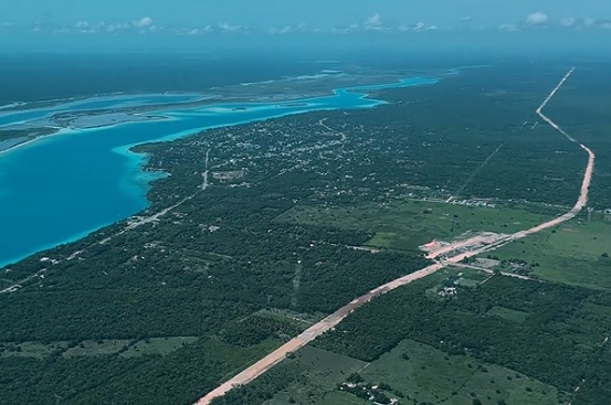 El presidente Andrés Manuel López Obrador supervisa este sábado los avances de la construcción del Tren Maya en Quintana Roo.