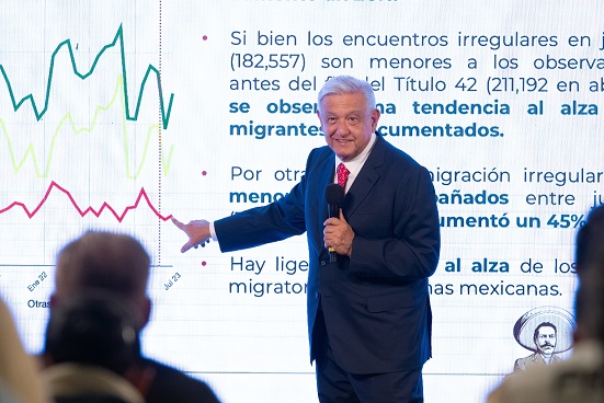 En su conferencia, dijo que el repunte de la migración en 26 por ciento en la región corresponde a personas de otros países porque en el caso mexicano, el repunte ha sido muy ligero. Recordó que de acuerdo a los reportes del Inegi ha habido un mejor remonto en las condiciones económicas y sociales, una reducción de la pobreza.