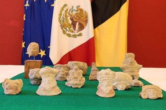 El embajador de México en Bélgica, Rogelio Granguillhome Morfín, recibió el día de hoy, 14 de agosto de 2023, 20 piezas arqueológicas tras ser dictaminadas por especialistas del Instituto Nacional de Antropología e Historia (INAH) como patrimonio cultural de nuestra nación. Los objetos proceden de culturas originarias del Altiplano Central y fueron elaboradas durante el periodo Clásico mesoamericano (100-650 d.C.).