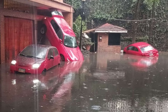 Residencias, automóviles, muebles y otros bienes resultaron afectados por el desbordamiento del Río San Ángel en el Fraccionamiento Atlamaya y la colonia Campestre Tlacopac, en Álvaro Obregón.