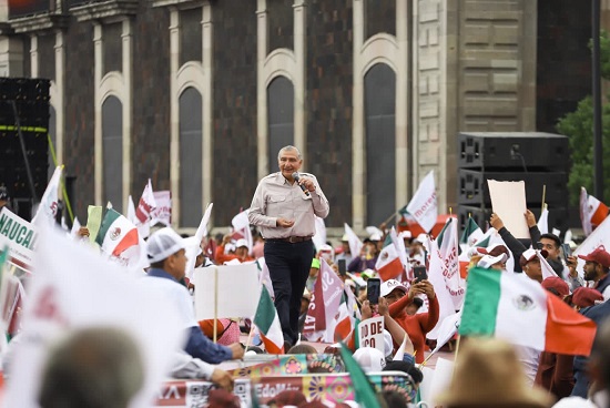 Desde la Plaza de los Mártires, en Toluca, Adán Augusto López Hernández aseguró que «el pueblo manda, el pueblo va a ganar y va a continuar la Cuarta Transformación».