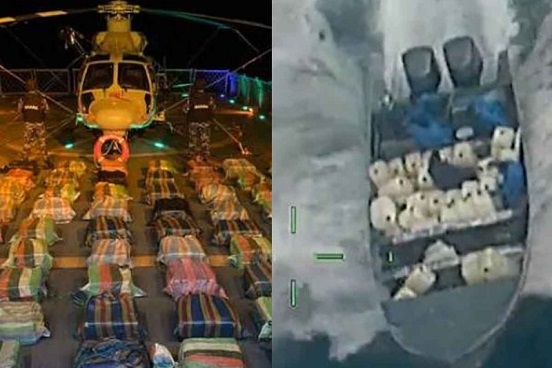 Durante estas acciones se desplegaron unidades en superficie y aeronaves de la institución, logrando asegurar, en el primer operativo, una embarcación menor con seis tripulantes, dos mexicanos y cuatro de nacionalidad extranjera, quienes transportaban aproximadamente mil quinitos kilogramos de presunta cocaína.