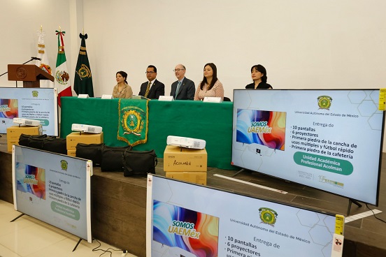 La Unidad Académica Profesional Acolman también se benefició de esta iniciativa, con la entrega de 10 pantallas y 6 proyectores. Además, durante el evento, se marcó un hito importante al colocar la primera piedra de la cafetería y las canchas de usos múltiples y futbol rápido. Estas nuevas instalaciones no solo mejorarán la vida estudiantil, sino que también promoverán la interacción social y el bienestar.