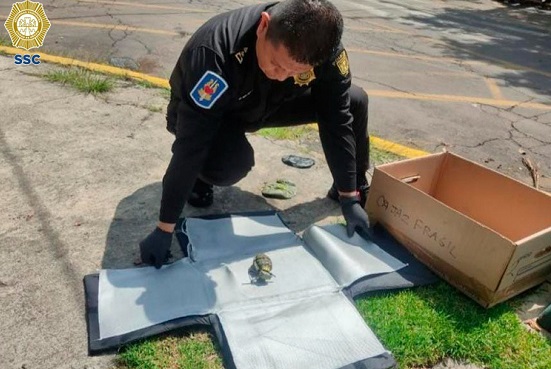 Efectivos del agrupamiento Fuerza de Tarea Zorros de la Secretaría de Seguridad Ciudadana de la Ciudad de México resguardaron y retiraron una granada de fragmentación sin carga explosiva al interior que fue hallada por personal de limpia, en calles de la colonia Lomas de Chapultepec, en la alcaldía Miguel Hidalgo.
