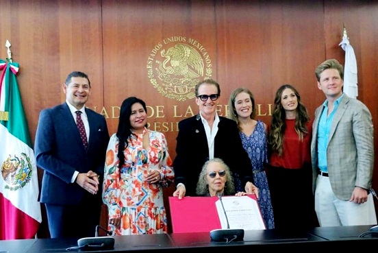La presidenta de la Mesa Directiva del Senado, Ana Lilia Rivera Rivera, entregó un reconocimiento al cantante y compositor, Jesús Emmanuel Arturo Acha Martínez, mejor conocido como Emmanuel, por su trayectoria artística de más de 40 años.