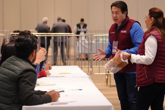 Para garantizar la confiabilidad del proceso, el dirigente de Morena explicó que hay 50 representantes de los aspirantes en una sala del World Trade Center, más cinco coordinadores generales, más un coordinador general. Además, cada una de las mesas está siendo grabada.