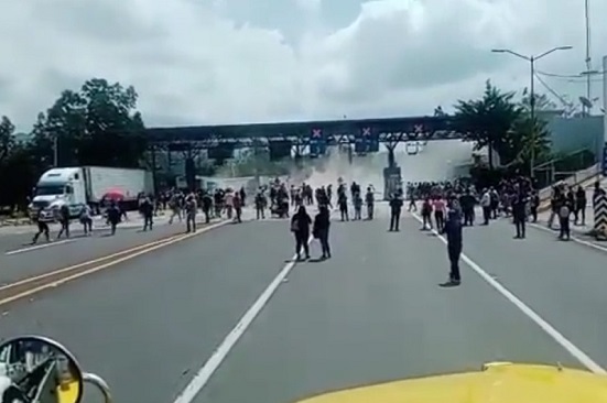 Los elementos estatales lanzaron gas contra los docentes, quienes se apostaron en la caseta de cobro desde las 8 de la mañana para permitir el paso libre de los usuarios.