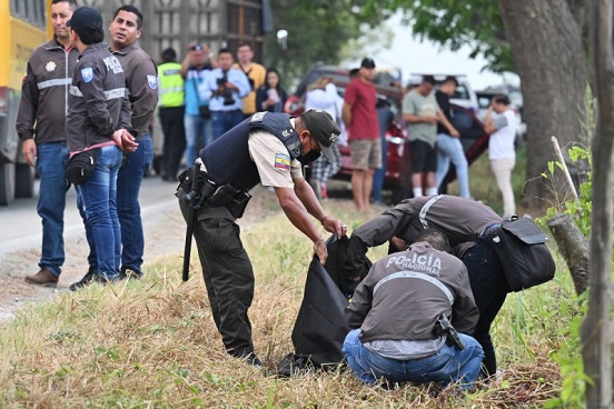 La prensa registró el momento en que policías y miembros de la fiscalía hacían el levantamiento del cadáver junto a una ruta al norte de Guayaquil que conecta a las ciudades de Daule y Salitre. Muy cerca, un grupo de mujeres lloraba.