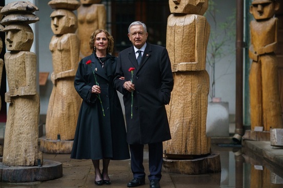 Acompañado por la doctora Beatriz Gutiérrez Müller, el mandatario arribó al Palacio de La Moneda, donde emitió un mensaje al pueblo chileno reafirmando los lazos de hermanamiento con México, así como el cariño y respeto a Salvador Allende, a quien consideró como el “Apóstol de la Democracia de Chile”.