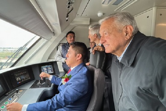 López Obrador se coló hasta la cabina de mando en donde supervisó de cerca el recorrido del Tren Interurbano México-Toluca mientras les daban una explicación acerca de la operación de este medio de transporte y cuyos convoyes eléctricos correrán a una velocidad máxima de 80 kilómetros por hora en esta primera etapa.