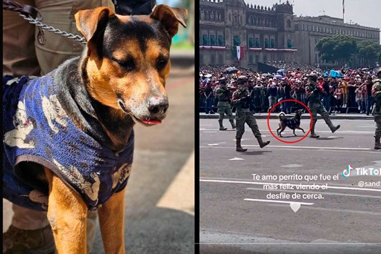 Durante el Desfile MIlitar del pasado 16 de septiembre de 2023, una usuaria en redes sociales grabó y publicó un video en donde se ve como de forma inesperada un lomito ataviado con un suéter azul sale de la nada y se une al convoy militar que en ese momento pasaba por la plancha del Zócalo de la Ciudad de México.