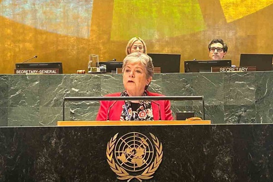 En el marco de las Discusiones de Alto Nivel del 78o. Período de Sesiones de la Asamblea General de las Naciones Unidas, la canciller compartió además «algunos de los logros y proyectos de México en la Cobertura Universal de Salud».