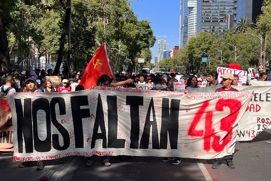 A nueve años del caso Ayotzinapa, en la Ciudad de México (CDMX) se lleva a cabo una marcha por parte de diversos contingentes que exigen justicia por la desaparición de los 43 normalistas.