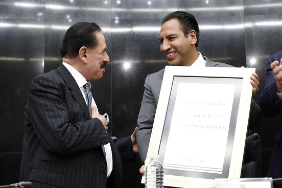 A la ceremonia de reconocimiento de Juan Francisco Ealy Ortiz, asistieron los líderes de todos los grupos parlamentarios con representación en el Senado de la República, y los dirigentes nacionales de Morena, Mario Delgado; del PAN, Marko Cortés; del PRD, Jesús Zambrano, así como otros personajes políticos y exgobernadores.