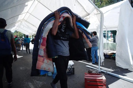 Finalmente los normalistas que acompañaron los ocho días de plantón a los padres y madres de los jóvenes, retiraron las carpas, colchonetas y enseres que utilizaron para regresar a Guerrero.
