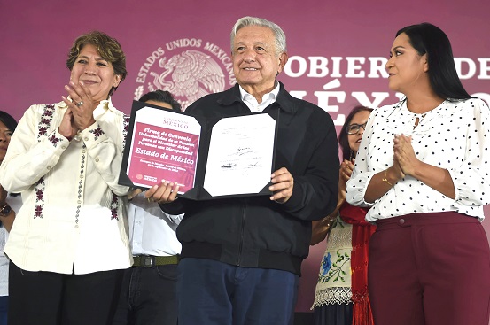 “Ahora llegamos a un acuerdo, con la Maestra Delfina para que, de 29 hasta 64 años, también reciban su pensión las personas con discapacidad, lo que se necesita de presupuesto, la Maestra Delfina, Gobernadora del Estado de México, acordó que las autoridades del Estado de México van a aportar el 50 por ciento y el Gobierno Federal el otro 50 por ciento”, informó.