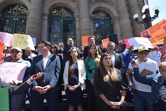 Según MORENA la sesión de trabajo con la Comisión de Justicia del Congreso local se suspendió porque hubo agresiones en su contra, explicaron los diputados panistas ante cientos de manifestantes.