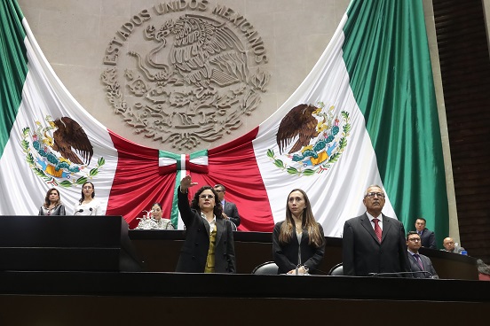 La presidenta de la Mesa Directiva, diputada Marcela Guerra Castillo, fue la encargada de tomarle protesta de decir verdad a la funcionaria, con fundamento en los artículos 69 y 93 de la Constitución Política.