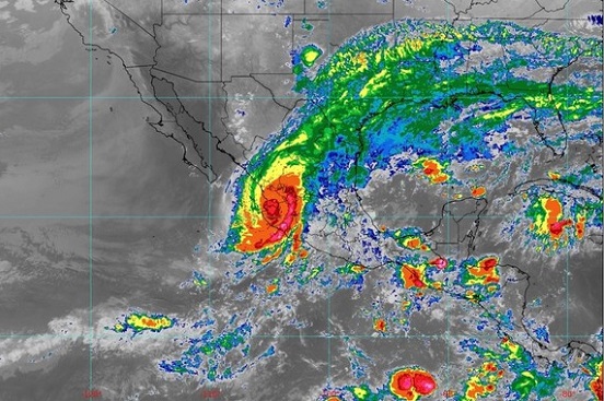 Su amplia circulación mantendrá, en las próximas horas, las condiciones para lluvias extraordinarias (mayores a 250 milímetros [mm]) en Colima, Jalisco y Nayarit; torrenciales (de 150 a 250 mm) en Michoacán y el occidente de Guerrero; intensas (de 75 a 150 mm) en Durango y Sinaloa, y muy fuertes (de 50 a 75 mm) en Aguascalientes, Guanajuato y Zacatecas.