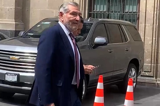 El exsecretario de Gobernación ingresó a pie por la calle Corregidora a Palacio Nacional.