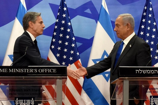 Benjamin Netanyahu, primer ministro ultraderechista de Israel, le mostró al jefe de la diplomacia estadounidense, Antony Blinken, “abominables fotos de bebés asesinados y quemados por los monstruos de Hamás” el sábado, indicó la oficina del jefe de gobierno.